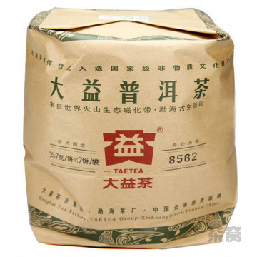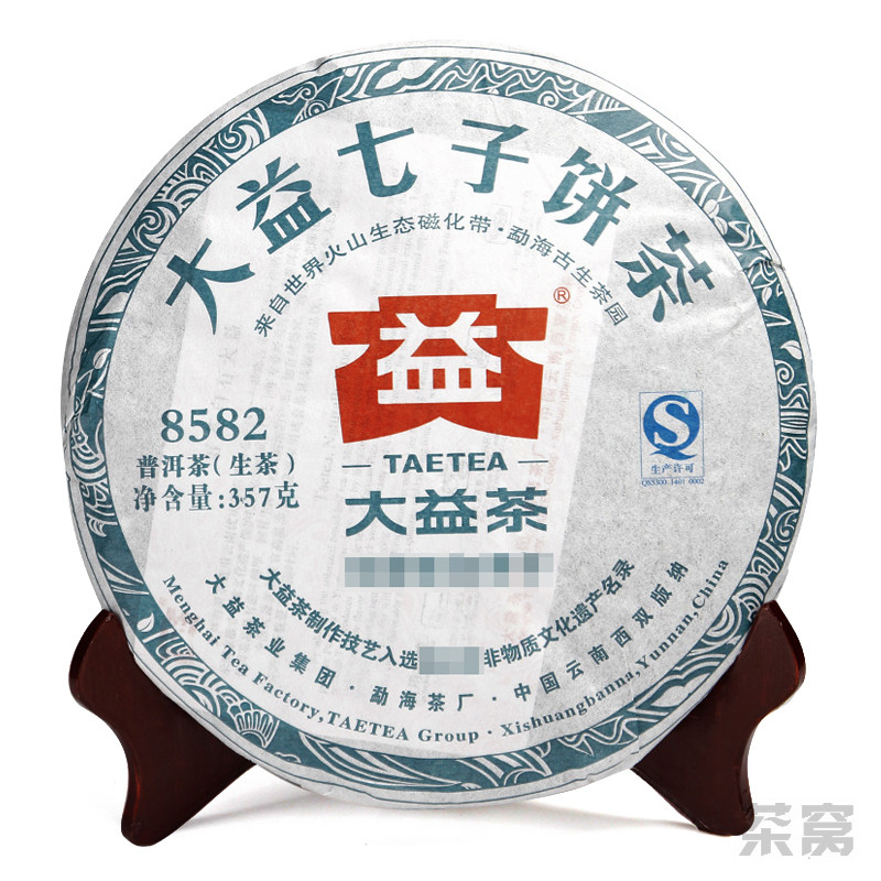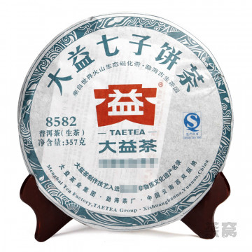 8582精选云南高海拔地区乔木大叶种晒青毛料,按勐海茶厂85年研制的配方拼配制作而成,是一款品质比较稳定的产品。饼形周正、松紧适度、饼面光洁、饼面条索紧结、色泽墨绿,内汤色金黄通透、香气纯正,杯底香韵好,滋味甜醇厚实,生津快,协调性好。