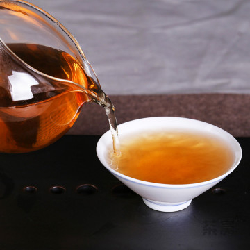 茶青采摘后,经过萎凋、杀青、揉捻、晒干, 再经过自然发酵(选地、 堆茶、洒水、翻堆、开沟、养茶、分选、灭菌)这一重要工艺后,把 熟茶毛茶蒸压成型;普洱熟茶外观呈棕褐色,(新制的一般都会带有 轻微堆味,放置一段时间便会退去),熟茶汤色红亮稠丽,似葡萄酒 ,口感厚滑甘润,香甜细腻。