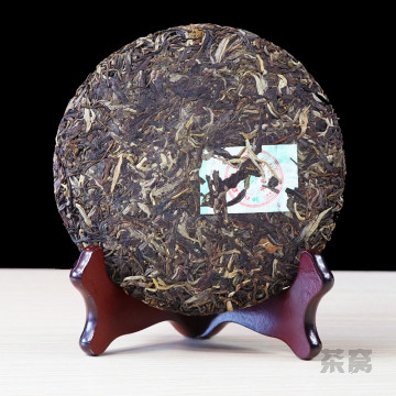 饼型圆润周正,茶窝较浅,条索紧结清晰,芽叶显毫,茶芽比较完整,可见有少量茶梗;茶饼压制松紧适度,周边紧结,闻茶饼清香宜人。