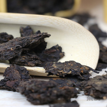 茶青采摘后,经过萎凋、杀青、揉捻、晒干, 再经过自然发酵(选地、 堆茶、洒水、翻堆、开沟、养茶、分选、灭菌)这一重要工艺后,把 熟茶毛茶蒸压成型;普洱熟茶外观呈棕褐色,(新制的一般都会带有 轻微堆味,放置一段时间便会退去),熟茶汤色红亮稠丽,似葡萄酒 ,口感厚滑甘润,香甜细腻。