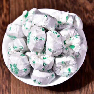 选用云南勐海大叶种乔木老树茶青为原料,传统晒青工艺加工,茶师用心拼配,蒸压定型,精制而成,每一粒都用棉纸精心包装,看上去精致美观,更好的保存茶叶,干净卫生,而且利于茶叶香气的保存。