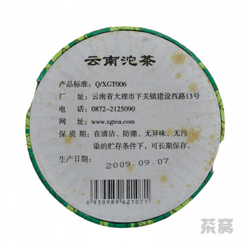下关常规绿盒包装,由于已存放7年,盒子底部显得稍微陈旧;