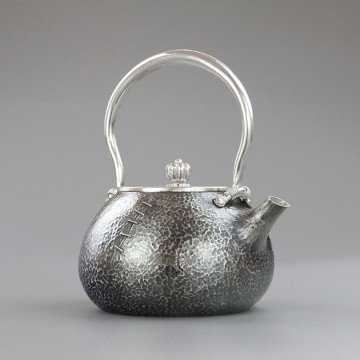 品名:大补丁提梁壶 材质: 纯银 毛重: 815克
