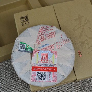其选料精良,采用古树春茶,用料细嫩。干茶色泽油润,可见许多肥壮的银色芽头,叶底叶质也肥嫩柔韧,也很有活力。