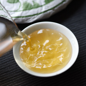 茶青采摘后,经过萎凋、杀青、揉捻、晒干,再将毛茶分级归堆,采 用普洱茶特有的压制工艺,蒸压成饼、沱、砖等形状,晾干、包装; 普洱生茶外观墨绿油润,散发出清新的茶香,汤色金黄明亮,香气馥 郁,甜润回甘。