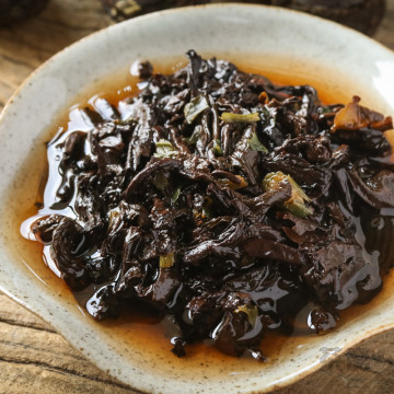 茶青采摘后,经过萎凋、杀青、揉捻、晒干, 再经过自然发酵(选地、 堆茶、洒水、翻堆、开沟、养茶、分选、灭菌)这一重要工艺后,把 熟茶毛茶蒸压成型;普洱熟茶外观呈棕褐色,(新制的一般都会带有 轻微堆味,放置一段时间便会退去),熟茶汤色红亮稠丽,似葡萄酒 ,口感厚滑甘润,香甜细腻。