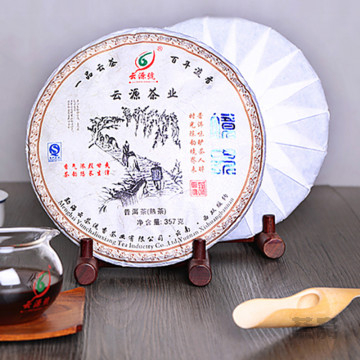 茶青采摘后,经过萎凋、杀青、揉捻、晒干, 再经过自然发酵(选地、 堆茶、洒水、翻堆、开沟、养茶、分选、灭菌)这一重要工艺后,把 熟茶毛茶蒸压成型;普洱熟茶外观呈棕褐色,(新制的一般都会带有 轻微堆味,放置一段时间便会退去),熟茶汤色红亮稠丽,似葡萄酒 ,口感厚滑甘润,香甜细腻。