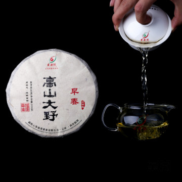 茶青采摘后,经过萎凋、杀青、揉捻、晒干,再将毛茶分级归堆,采 用普洱茶特有的压制工艺,蒸压成饼、沱、砖等形状,晾干、包装; 普洱生茶外观墨绿油润,散发出清新的茶香,汤色金黄明亮,香气馥 郁,甜润回甘。