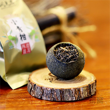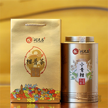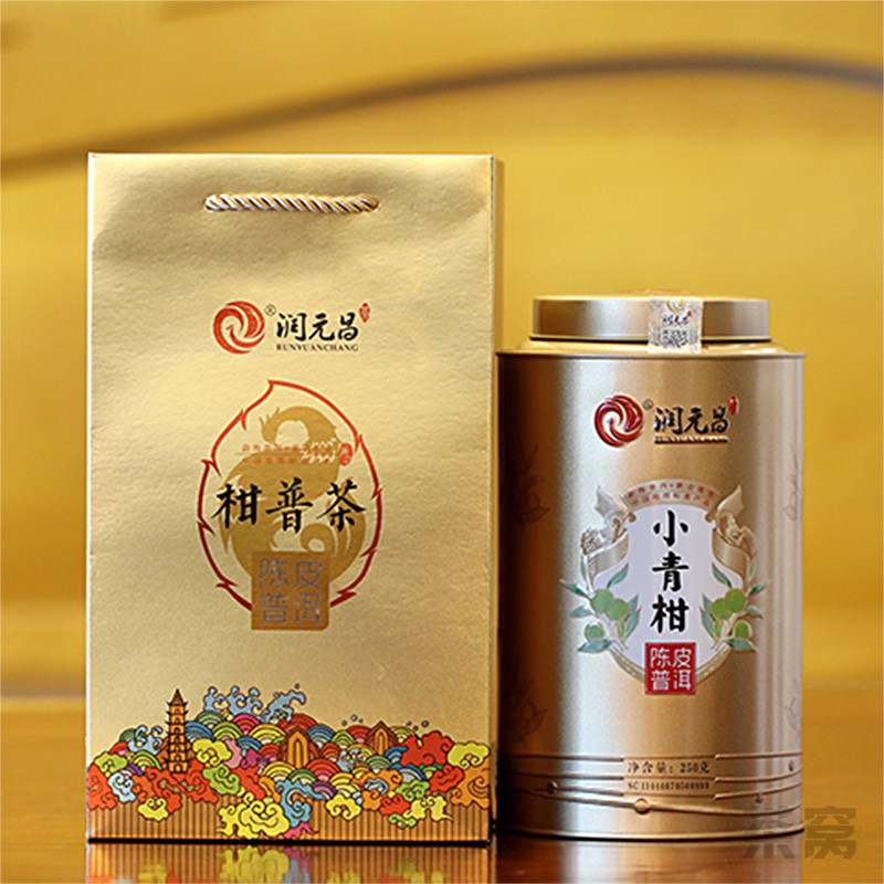 润元昌金罐1715小青柑 | 汤色油润浓稠,柑香袭人,茶醇味厚,一口顺滑,回味不绝。柑体圆润小巧,油室密集且均匀,春茶发酵的熟茶与新会核心优质柑皮原料的美好碰撞,为你开启美妙的味蕾体验。