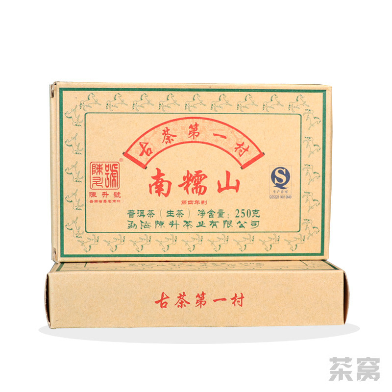 陈升号“南糯山砖”精选勐海南糯山大叶种晒青毛茶为原料,运用传统制作工艺,经手工压制而成。其条索紧结,芽头肥壮,色泽油润,银毫凸显;汤色金黄透亮,花蜜香浓郁,茶汤柔顺润滑,汤感细腻饱满,回甘迅猛,茶韵深,茶气强,叶底舒展完全,具有很好的柔韧性,细闻有淡淡茶香。