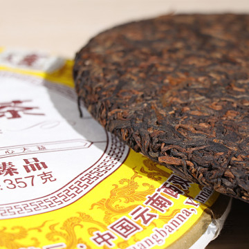 茶青采摘后,经过萎凋、杀青、揉捻、晒干, 再经过自然发酵(选地、 堆茶、洒水、翻堆、开沟、养茶、分选、灭菌)这一重要工艺后,把 熟茶毛茶蒸压成型;普洱熟茶外观呈棕褐色,(新制的一般都会带有 轻微堆味,放置一段时间便会退去),熟茶汤色红亮稠丽,似葡萄酒 ,口感厚滑甘润,香甜细腻。