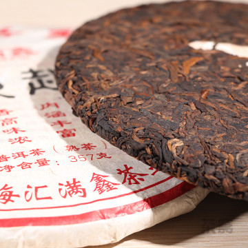 茶青采摘后,经过萎凋、杀青、揉捻、晒干, 再经过自然发酵(选地、 堆茶、洒水、翻堆、开沟、养茶、分选、灭菌)这一重要工艺后,把 熟茶毛茶蒸压成型;普洱熟茶外观呈棕褐色,(新制的一般都会带有 轻微堆味,放置一段时间便会退去),熟茶汤色红亮稠丽,似葡萄酒 ,口感厚滑甘润,香甜细腻。