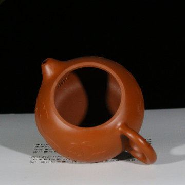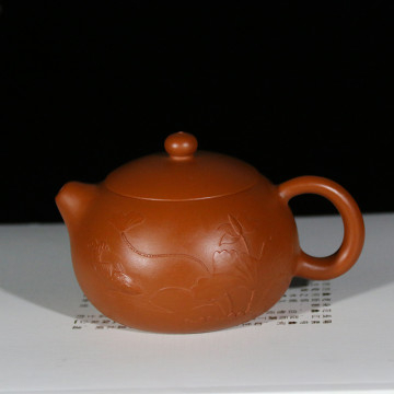 泥画堆绘装饰流行于清代十七世纪晚期。其工艺方法是在制作完工的壶坯上,须有一定湿度,用本色(制壶泥)或其它色泥,制成细泥浆,堆绘花鸟、山水或图案纹样。用泥浆堆画,须有一定的厚度,恰似薄意雕的浮雕透视效果。以泥装饰,作者须具有书法绘画、贴塑的艺术功底,才能取得良好的艺术效果。