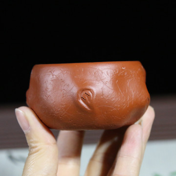紫砂是手工艺品,务请理解是手工艺品;因为,现代工业文明使我们能够享用到精密的机械产品,于是乎也就出现了太多所谓“紫砂鉴赏知识”的机械标准。手工艺品是自然的,所以也是艺术品,机械产品无论有多么精密标准,也没有人说它是艺术品。紫砂产品是手工制作并要进窑经高温烧制而成,所以是一品一相,各有韵味,因此或多或少都会有手工痕迹,如砂眼、糙点、打磨痕迹等,这些都是伴随手工艺品同时存在的,属于正常现象,并不是所谓的瑕疵;而机械产品是万品一相,僵直呆板。我们所售的紫砂产品是手工艺产品,请务必理解她不是标准化批量生产的精密机械产品,如果您非要用过分完美和挑剔的眼光来看待一件手工艺品,请慎拍!