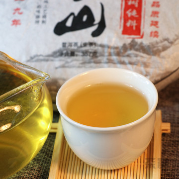 茶青采摘后,经过萎凋、杀青、揉捻、晒干,再将毛茶分级归堆,采 用普洱茶特有的压制工艺,蒸压成饼、沱、砖等形状,晾干、包装; 普洱生茶外观墨绿油润,散发出清新的茶香,汤色金黄明亮,香气馥 郁,甜润回甘。