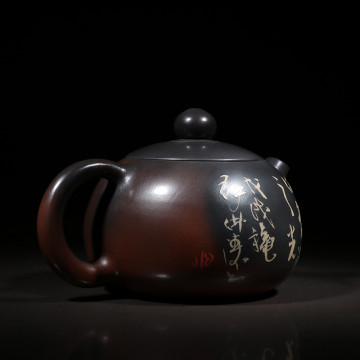 A:建水紫陶大部分作品都是与书画相结合,但摸上去很光滑,上面的字画是在泥坯的时候,就由书画家画上去,然后进行雕刻,再填上天然泥料后进行烧制、打磨等后期工艺,因此上面的字画不是在表面的东西,而是深深刻入,融为一体的,是不会被磨掉的。