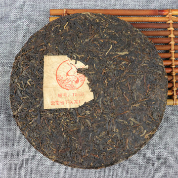 8633为下关茶厂性价比高的常规制式青饼,精选优质云南大叶种茶菁为原料,采用下关百年的传统工艺精心配制,经点苍山天然雪泉蒸压定型精制而成。茶饼周正,正面条索清晰,色泽深褐,稍显芽毫,经十余年自然转化,芽毫已经转为金色。