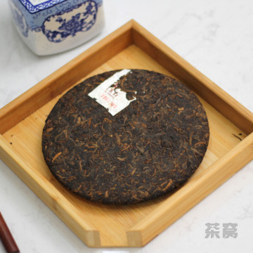 饼形紧实圆润,条索粗壮肥硕,褐红相间,金毫显露,近嗅陈香阵阵。