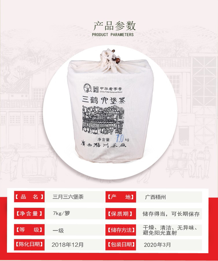 2020年三月三箩装六堡7千克/箩(箱) 2018年起始陈化 压制松紧适度,较好保留中箩茶特色,宜品藏