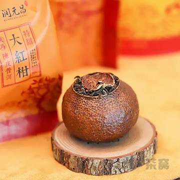 【茶品原料】:2001特甜大红柑,精选2016年新会核心产区大红柑和2014年春茶发酵的宫廷熟茶,实实在在的地道柑普茶。果胶、氨基酸、糖类物质等丰富内涵在时光的磨砺下,青涩褪去,更现质感,待其在沸水中缓缓释放,口口甜糯香滑,细腻留口。