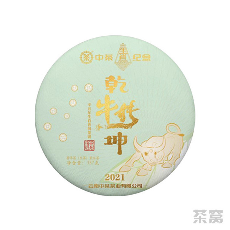 中茶辛丑年生肖普洱茶饼普洱茶(生茶)紧压茶精选云南省三大产区优质晒青毛茶,历经三年干仓陈化,再经拼配、静电、风选、色选、人工拣剔、蒸压、低温干燥等多道工艺精制而成。饼形圆润大气,松紧适度,色泽墨绿显毫,汤色金黄透亮,香气馥郁,滋味浓醇饱满,有苦底,回甘快,层次丰富,韵味悠长。