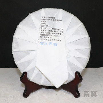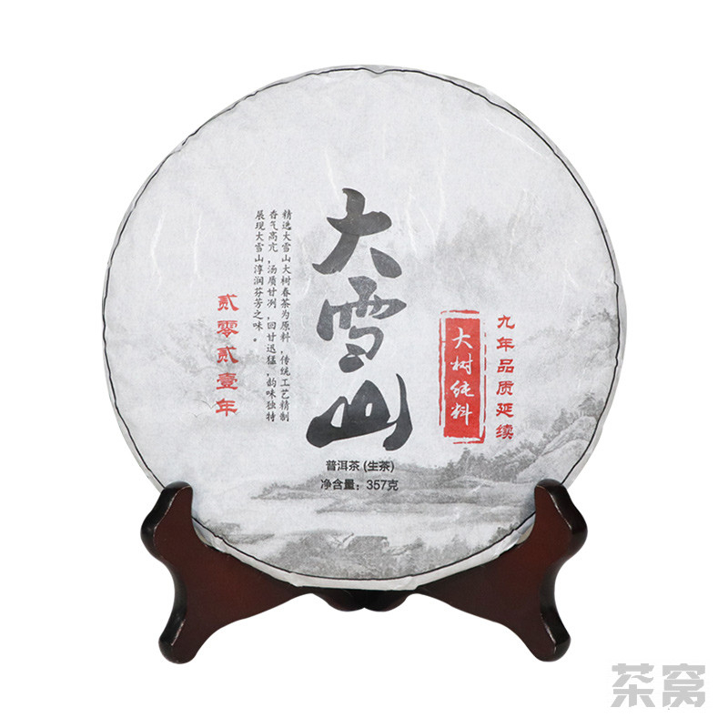 九年的品质延续,相信很多茶友手 里也还留存着较老年份的茶饼,相信转化得非常不错了,对于好茶来说,不仅要当下好喝,更要留有后期的转化空间,此款大雪山精选大雪山大树春茶为原料,传统工艺精制,香气高亢,汤质甘冽,回甘迅猛,韵味独特,展现大雪山醇润芬芳之味。