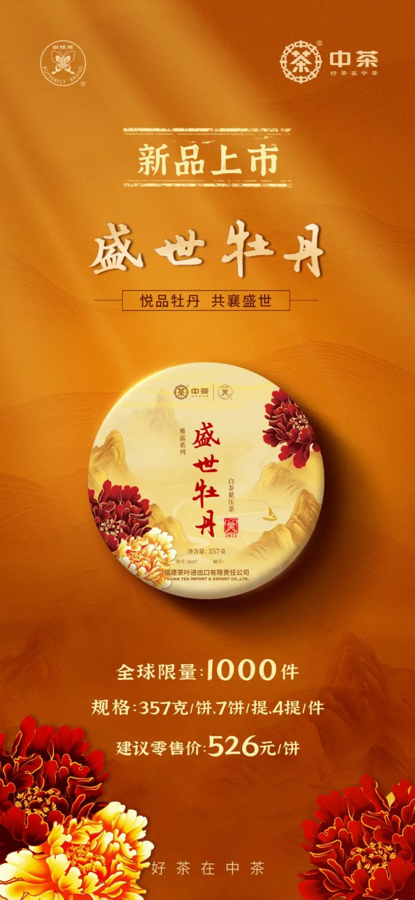 2022年盛世牡丹,饼形圆润饱满,白毫显露,香气清高; 滋味醇厚,饱含甜香,陈韵显