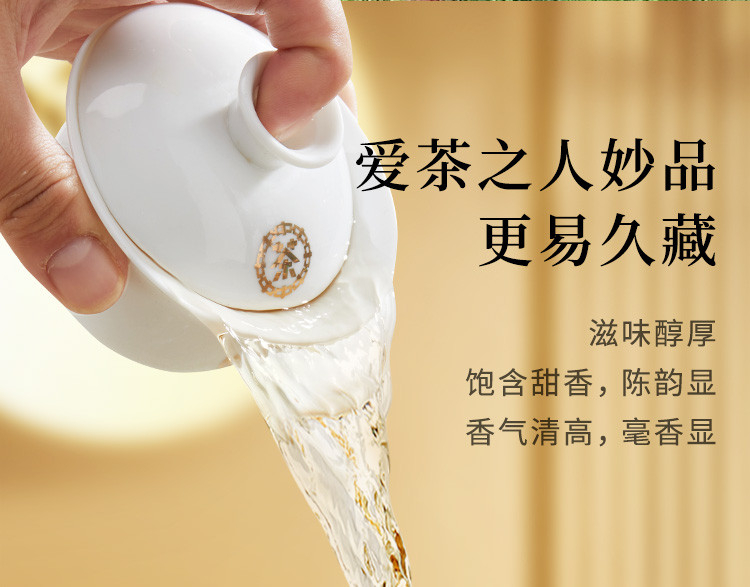 茶青采摘后,经过萎凋、杀青、揉捻、晒干,再将毛茶分级归堆,采 用普洱茶特有的压制工艺,蒸压成饼、沱、砖等形状,晾干、包装; 普洱生茶外观墨绿油润,散发出清新的茶香,汤色金黄明亮,香气馥 郁,甜润回甘。