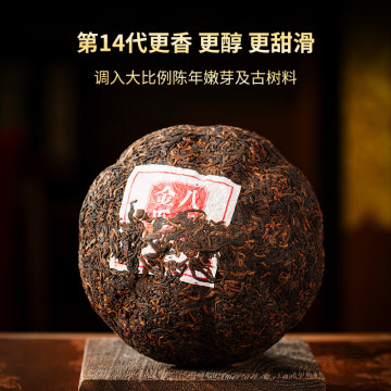 茶青采摘后,经过萎凋、杀青、揉捻、晒干, 再经过自然发酵(选地、 堆茶、洒水、翻堆、开沟、养茶、分选、灭菌)这一重要工艺后,把 熟茶毛茶蒸压成型;普洱熟茶外观呈棕褐色,(新制的一般都会带有 轻微堆味,放置一段时间便会退去),熟茶汤色红亮稠丽,似葡萄酒 ,口感厚滑甘润,香甜细腻。