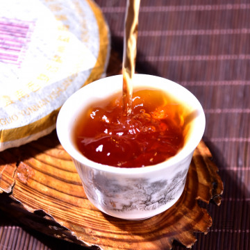 茶青采摘后,经过萎凋、杀青、揉捻、晒干, 再经过自然发酵(选地、 堆茶、洒水、翻堆、开沟、养茶、分选、灭菌)这一重要工艺后,把 熟茶毛茶蒸压成型;普洱熟茶外观呈棕褐色,(新制的一般都会带有 轻微堆味,放置一段时间便会退去),熟茶汤色红亮稠丽,似葡萄酒 ,口感厚滑甘润,香甜细腻。